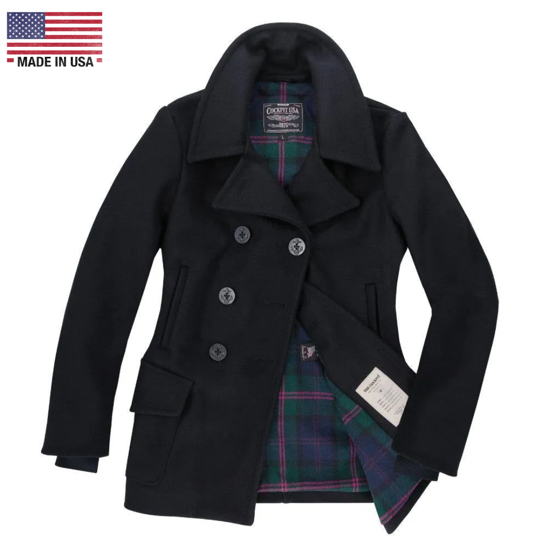 Born from the rugged outerwear worn by Dutch sailors and later adopted by the British Royal Navy and U.S. Navy, the peacoat has earned its place as one of the most iconic maritime garments in history. Cockpit USA elevates this timeless design with a refined women’s silhouette and a warm plaid flannel lining, creating a peacoat that blends classic naval heritage with modern elegance. Tailored, flattering, and built to last, this is the women’s peacoat that outclasses every look-alike on the market.