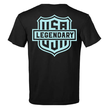 Proudly 100% Made in the USA, this shirt is available only in black because we love how black looks with neon, TUFFANY & Co. Blue and Golden Yellow! The Legendary USA artwork is created in-house, ensuring a unique and authentic design.