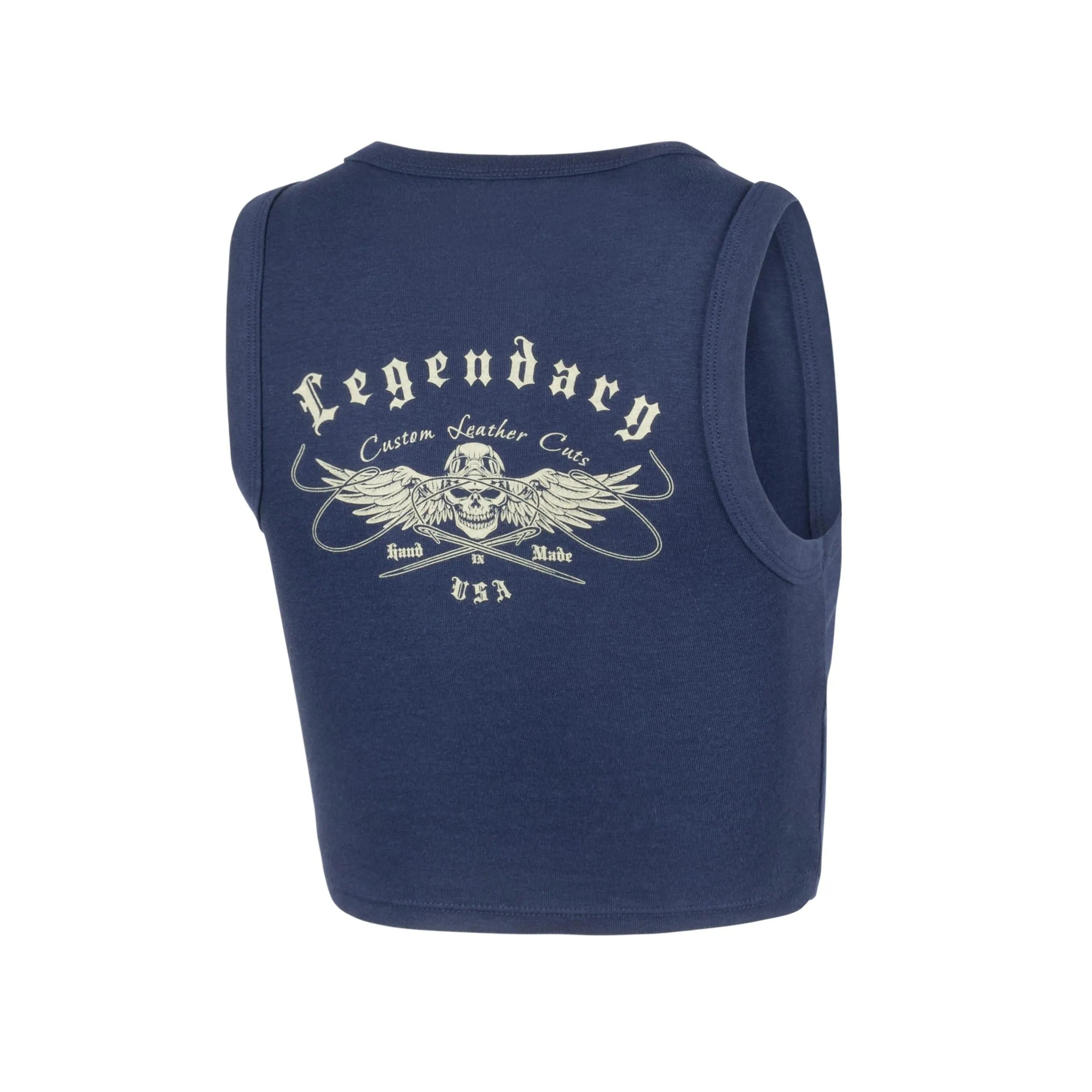 Stay true to your beliefs, stand strong against imposters and most of all never sacrifice your loyalty for the sake of others. Our Legendary Custom Cuts are is a hot staple in any ladies wardrobe. Whether you're riding fast or chillin' at a bar, we got you covered with this sexy cropped tank top. Navy Blue