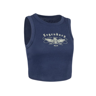 Women's Legendary Baby Ribbed Cropped Tank Top - Navy Blue - Custom Cuts logo