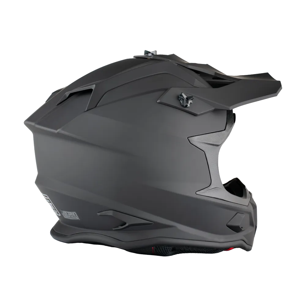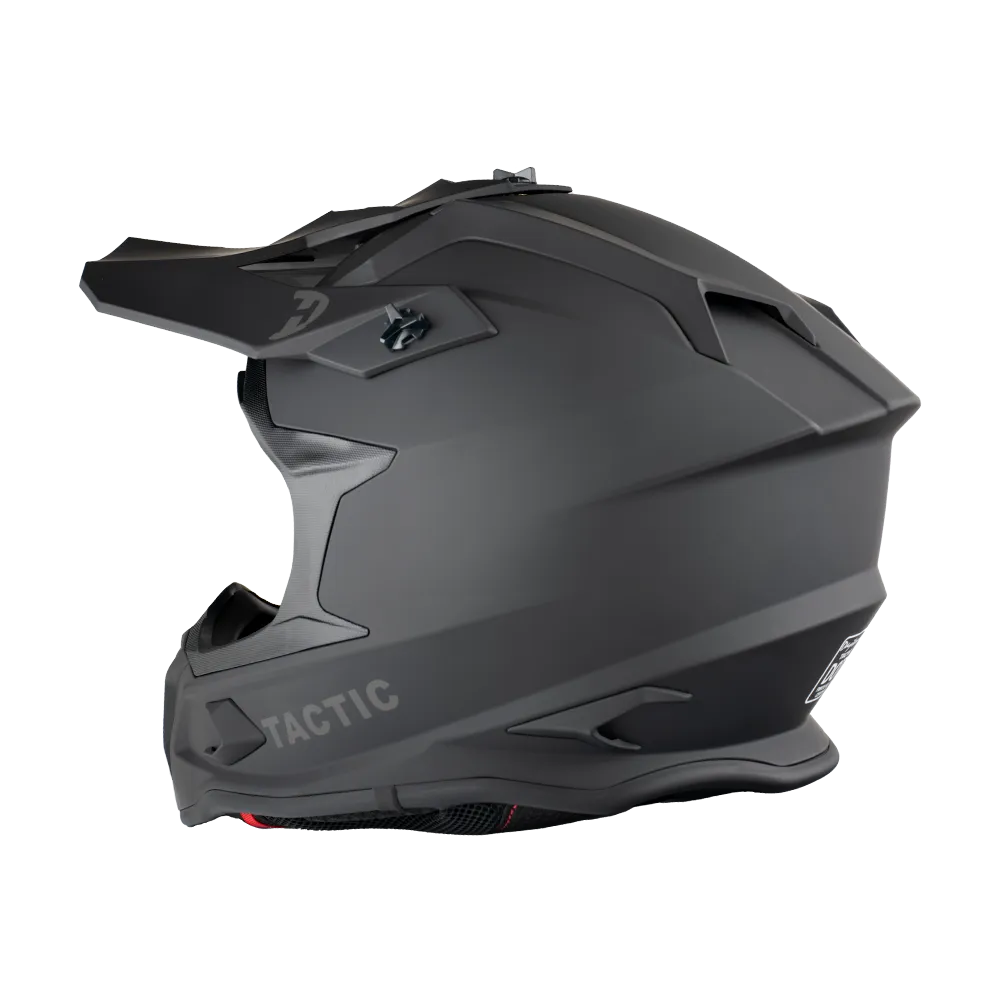 Our D.O.T. And ECE Daytona Tactic Motocross Helmet In A Soft Touch Dull Black, Meets And Exceeds D.O.T. FMVSS 218 And ECE 22R06 Standards. Helmet Comes Goggle-Ready And Features A Removable Aerodynamic Visor. Also Has A Quick Release Lock Retention System; One Finger Release Lever For Easy Detachment, Passive Chin And Forehead Ventilation And A Removable, Hand Washable Interior (Moisture Wicking Fabric). Bluetooth Compatible. Cloth Draw String Bag Included. Sizes Range From XS-2XL.