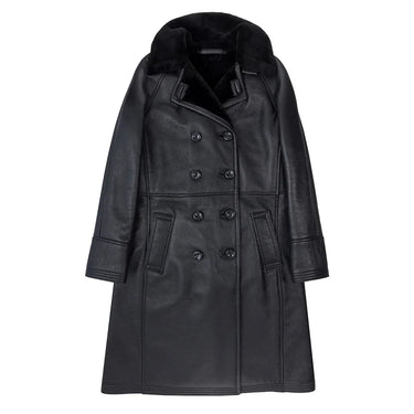 Crafted from 100% genuine sheepskin, this timeless trench delivers luxurious softness, sturdy structure and sophistication in one style. An esteemed relationship that began 20+ years ago designing for Bad Boy Entertainment, Cockpit USA and famed hip-hop stylist Mike B (Bogard) are proud to introduce this full-length, double-breasted women's sheepskin trench coat. This piece brings together the natural warmth of sheepskin fur inside with a supple exterior Nappa finish in a very stylish silhouette. This style is designed for the modern woman wo values both style and functionality.