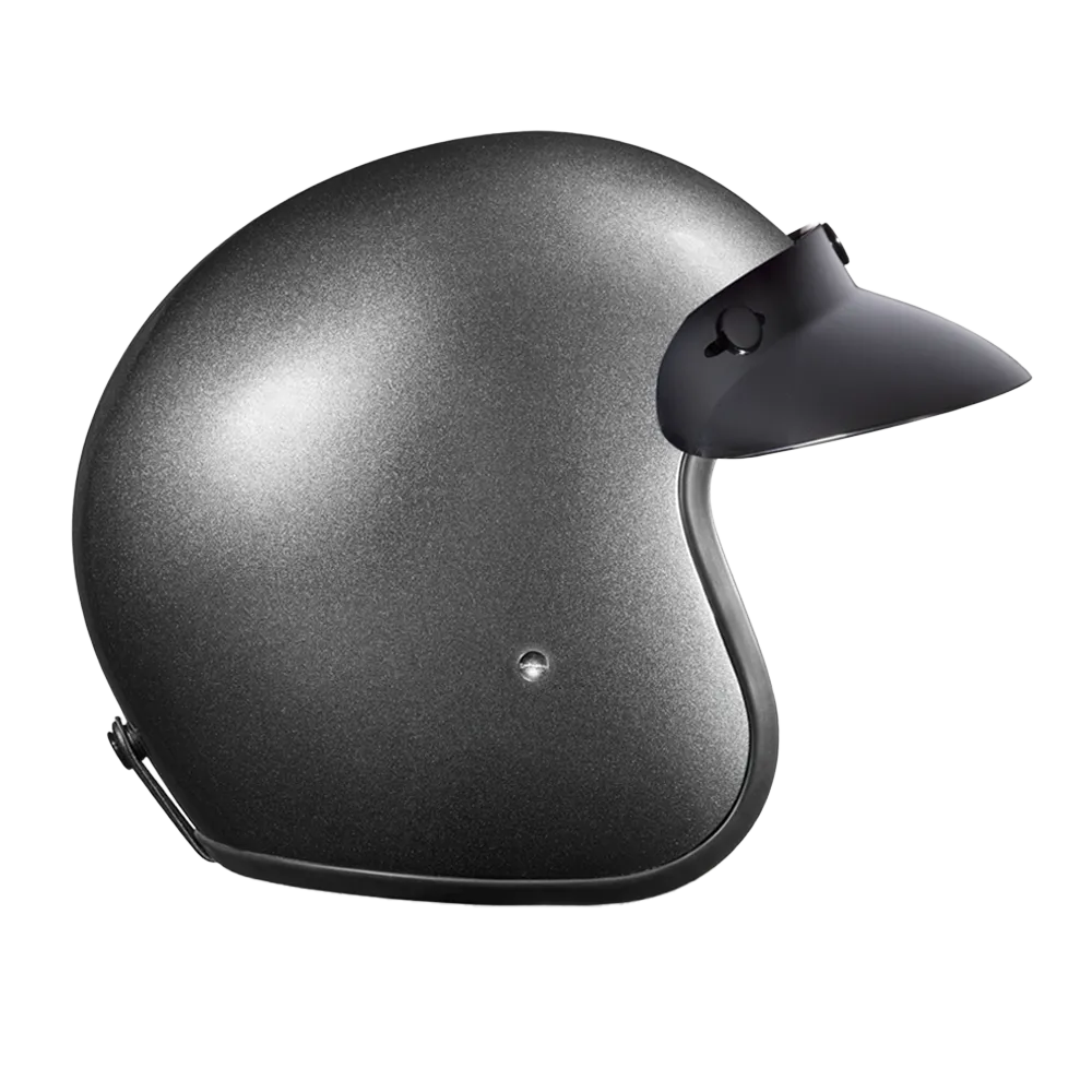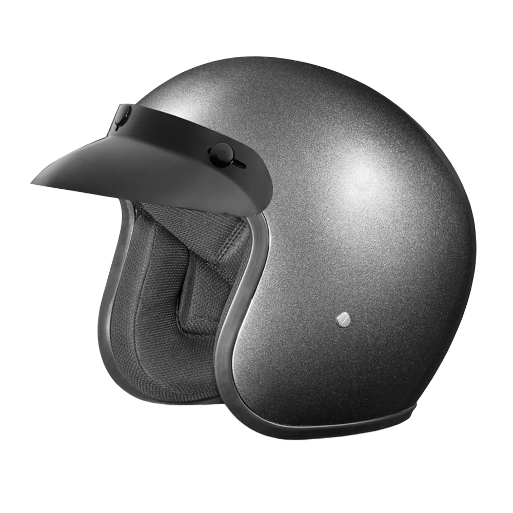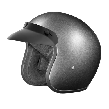 Our D.O.T. Daytona Cruiser 3/4 Shell Helmet In The Gun Metal Grey Metallic Finish, Meets And Exceeds D.O.T. FMVSS 218 Standards And Is The Smallest D.O.T. 3/4 Shell Helmet Ever Made!! With 3 Different Shell Sizes, You're Sure To Get That Proportionate Fit!! Available Only With Removable, Snap On Gloss Black Bubble Visor. Many More Colors And Designs Available Such As Soft Touch Dull Black, Hi-Gloss Black And Hi-Gloss White; Specialty Items: Graphics And Metal Flake. Head Wrap And Cloth Draw String Bag Included. Sizes Range From 2XS-4XL.