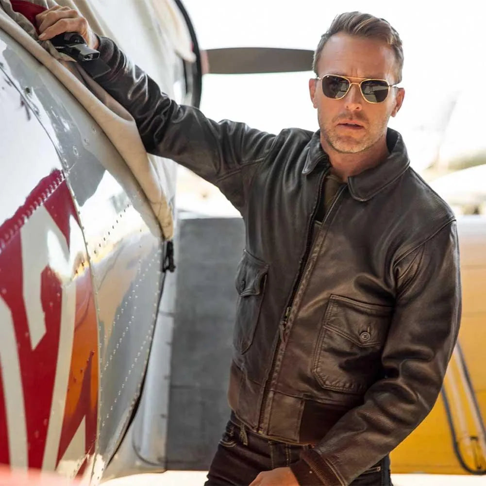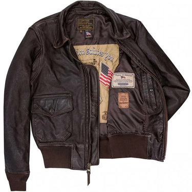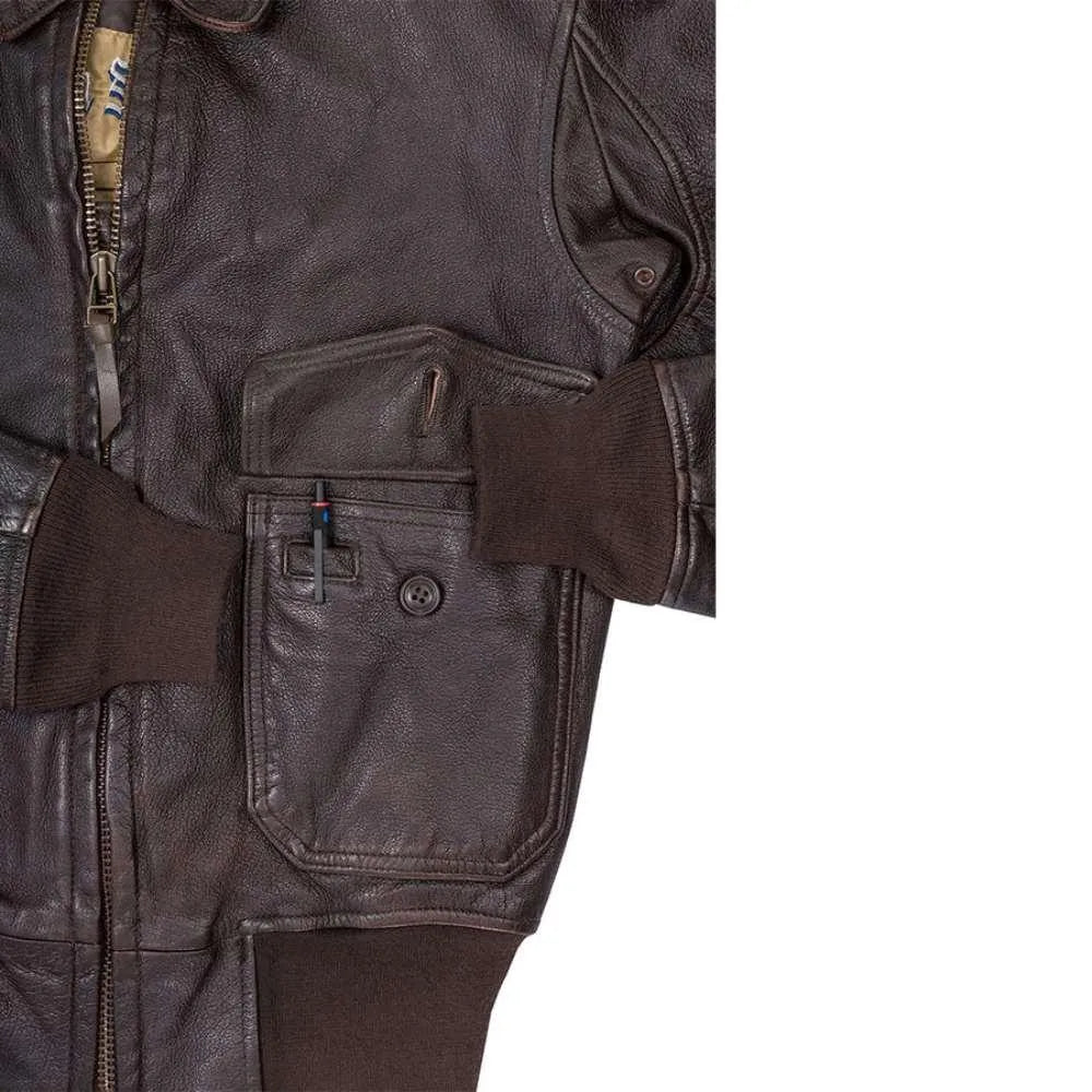 Cockpit USA’s G-1 Vintage Naval Aviator Jacket recreates the rare, battle-worn look of a fighter pilot’s modified G-1 from the USS Forrestal. The original jacket that inspired this design had its mouton fur collar removed and replaced with leather—a common field modification for pilots who flew primarily in warm-weather environments and needed a cooler, more streamlined fit. With its hand-treated goatskin and authentic naval detailing, this furless G-1 delivers a rugged, historically accurate profile true to the aviators who served aboard the Forrestal and later the Constellation with squadrons like VA-65.