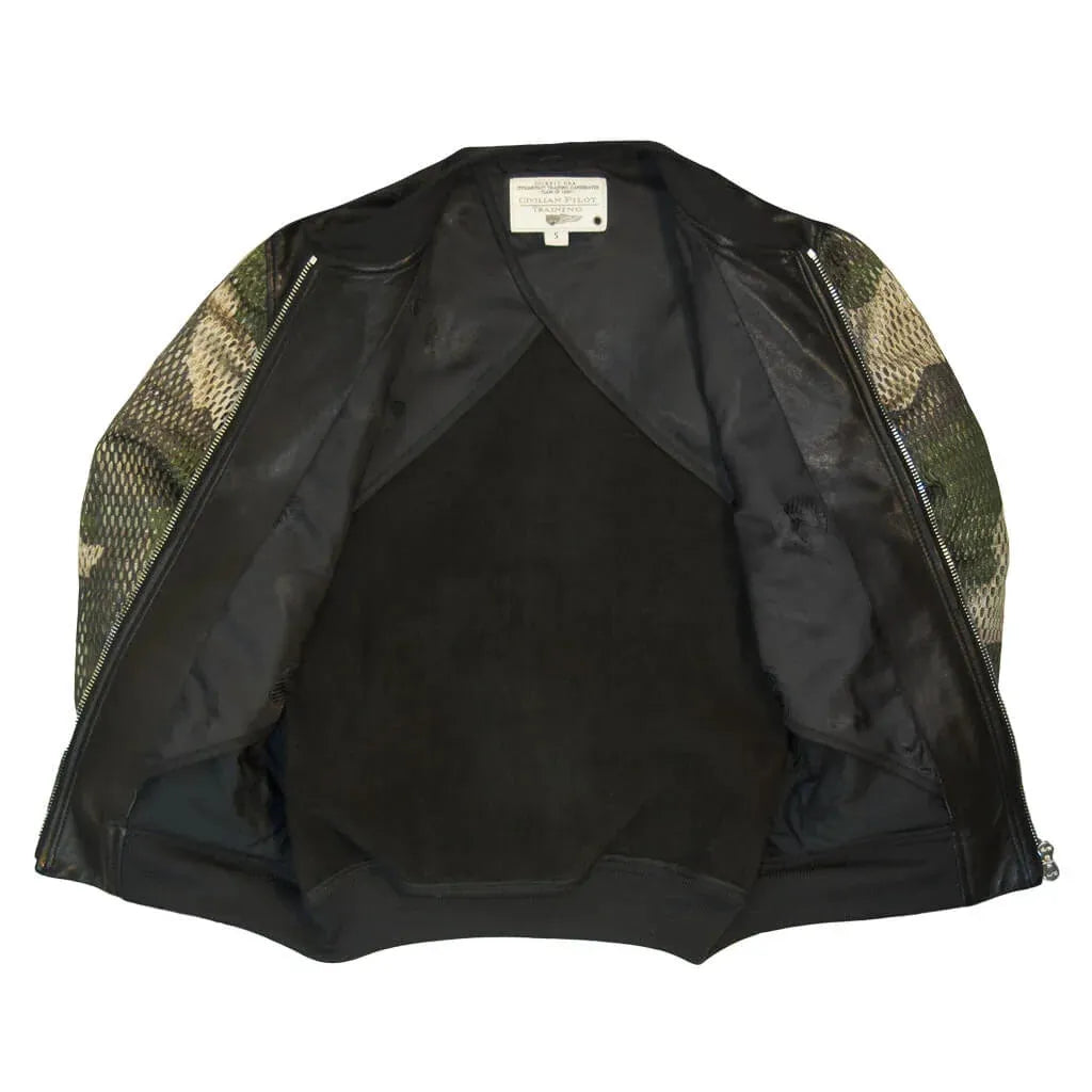 Bold, confident, and unmistakably modern, the Cockpit USA Women’s Hot Stuff Bomber Jacket blends classic bad-girl attitude with authentic military styling. Proudly manufactured in the USA, this striking piece features soft lightweight lambskin leather paired with camo mesh sleeves, delivering a unique mix of edge, comfort, and standout design.