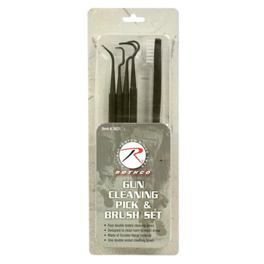 Rothco's Gun Cleaning Pick and Brush Set is a kit of 4 nylon picks and a polypropylene brush. Each pick is double ended with different shapes and grips. Each pick has a hexagon shape for grip.