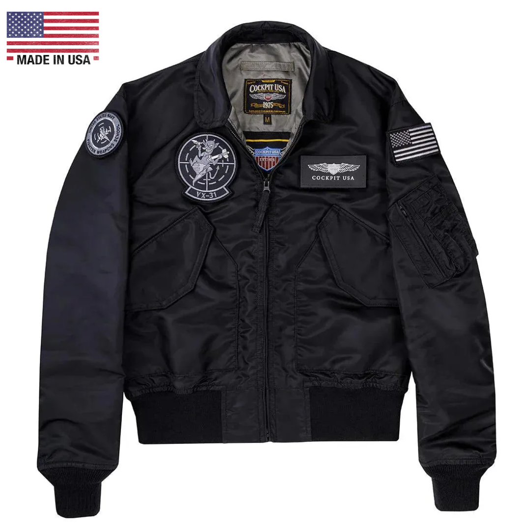 Cockpit USA Movie Heroes Men's Black Stealth Nylon Flight Jacket