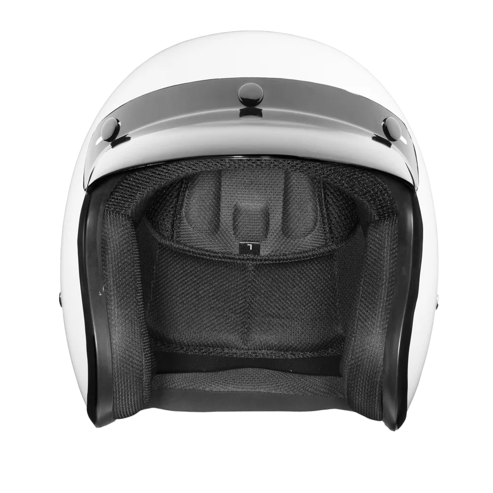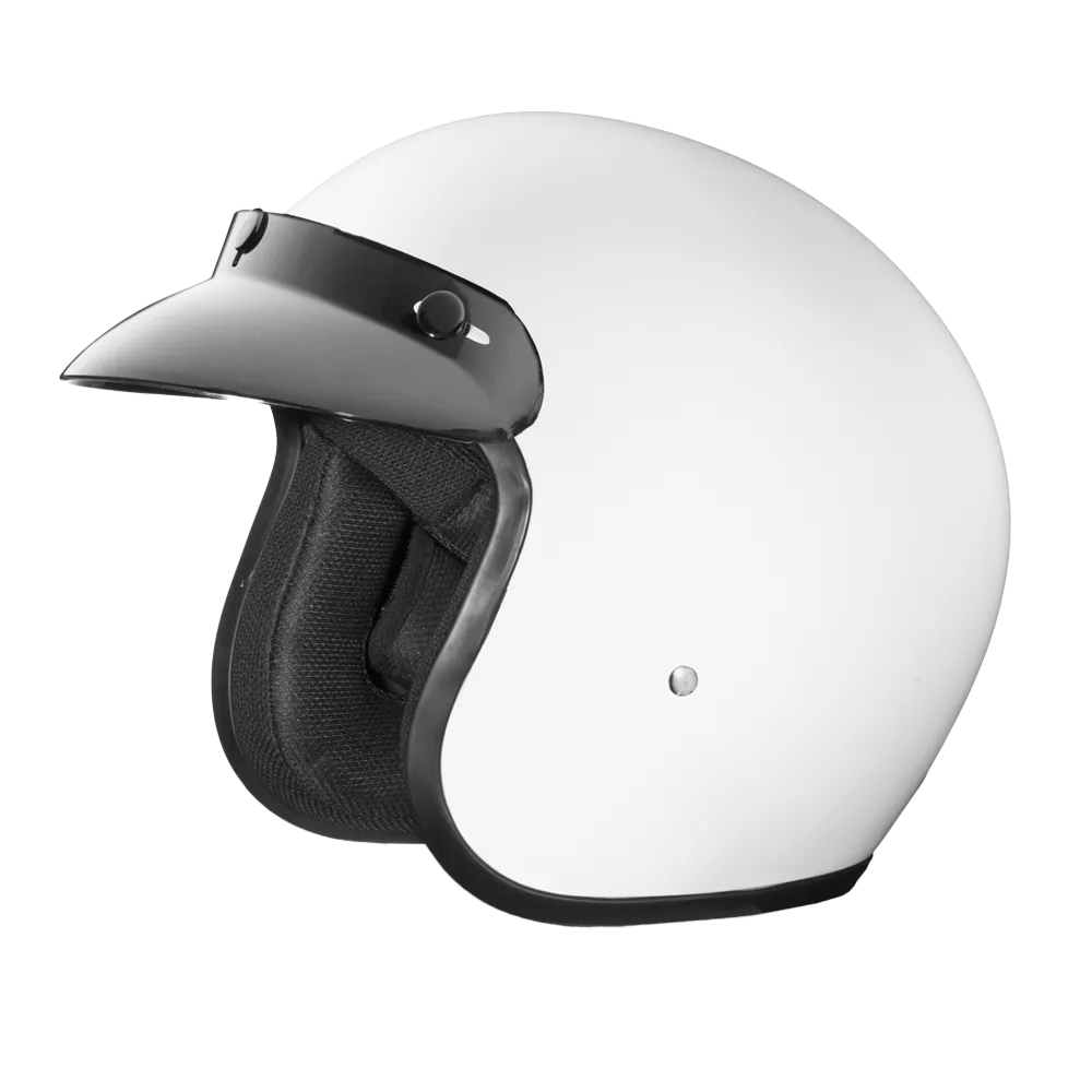 Our D.O.T. Daytona Cruiser 3/4 Shell Helmet In Hi-Gloss White Finish, Meets And Exceeds D.O.T. FMVSS 218 Standards And Is The Smallest D.O.T. 3/4 Shell Helmet Ever Made!! With 3 Different Shell Sizes, You're Sure To Get That Proportionate Fit!! Available Only With Removable, Snap On Gloss Black Bubble Visor. Many More Colors And Designs Available Such As Soft Touch Dull Black And Hi-Gloss Black; Custom Colors: Gun Metal Grey Metallic; Specialty Items: Graphics And Metal Flake. Head Wrap And Cloth Draw String Bag Included. Sizes Range From 2XS-4XL.