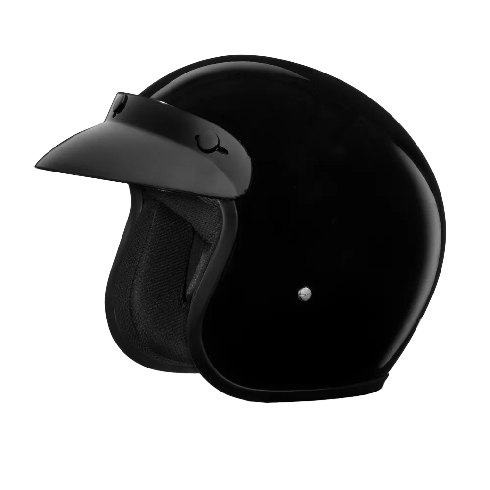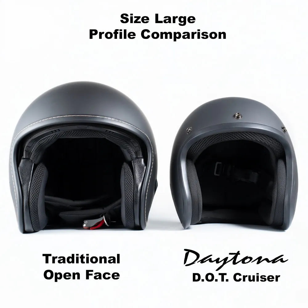 Our D.O.T. Daytona Cruiser Jr. 3/4 Shell Helmet In The Hi-Gloss Black Finish, Meets And Exceeds D.O.T. FMVSS 218 Standards, And Is The Smallest D.O.T. 3/4 Helmet Ever Made!! Clear Lacquer Finish, Available Only With Removable, Snap On Gloss Black Bubble Visor. Head Wrap And Cloth Draw String Bag Included. Sizes Range From S-L.