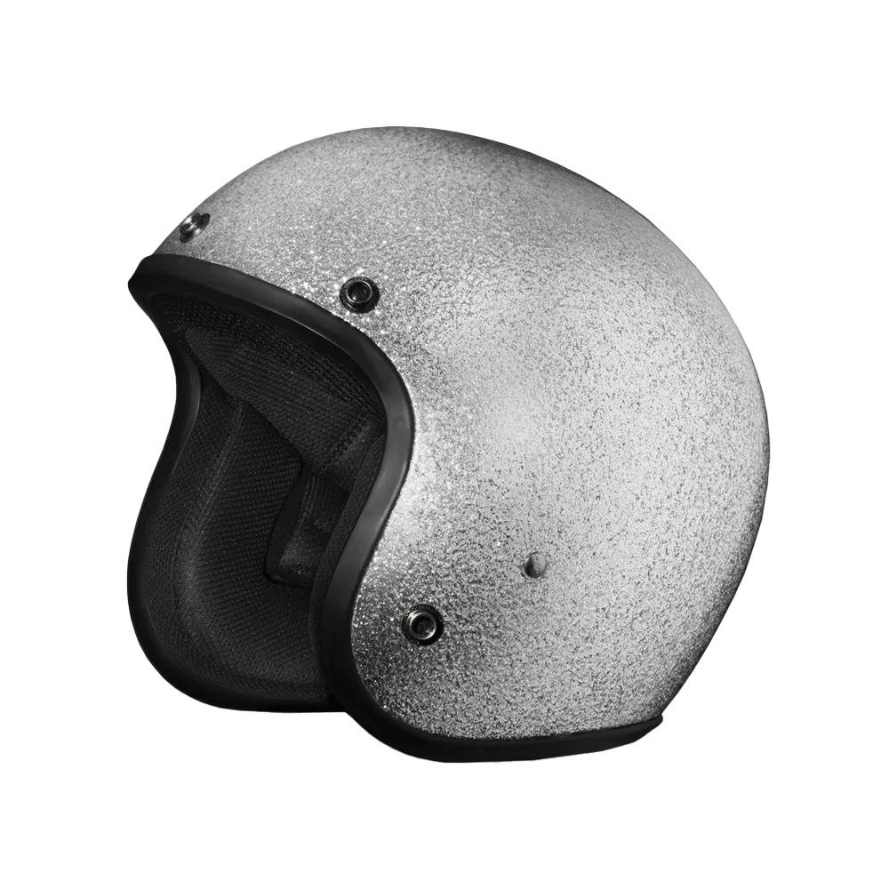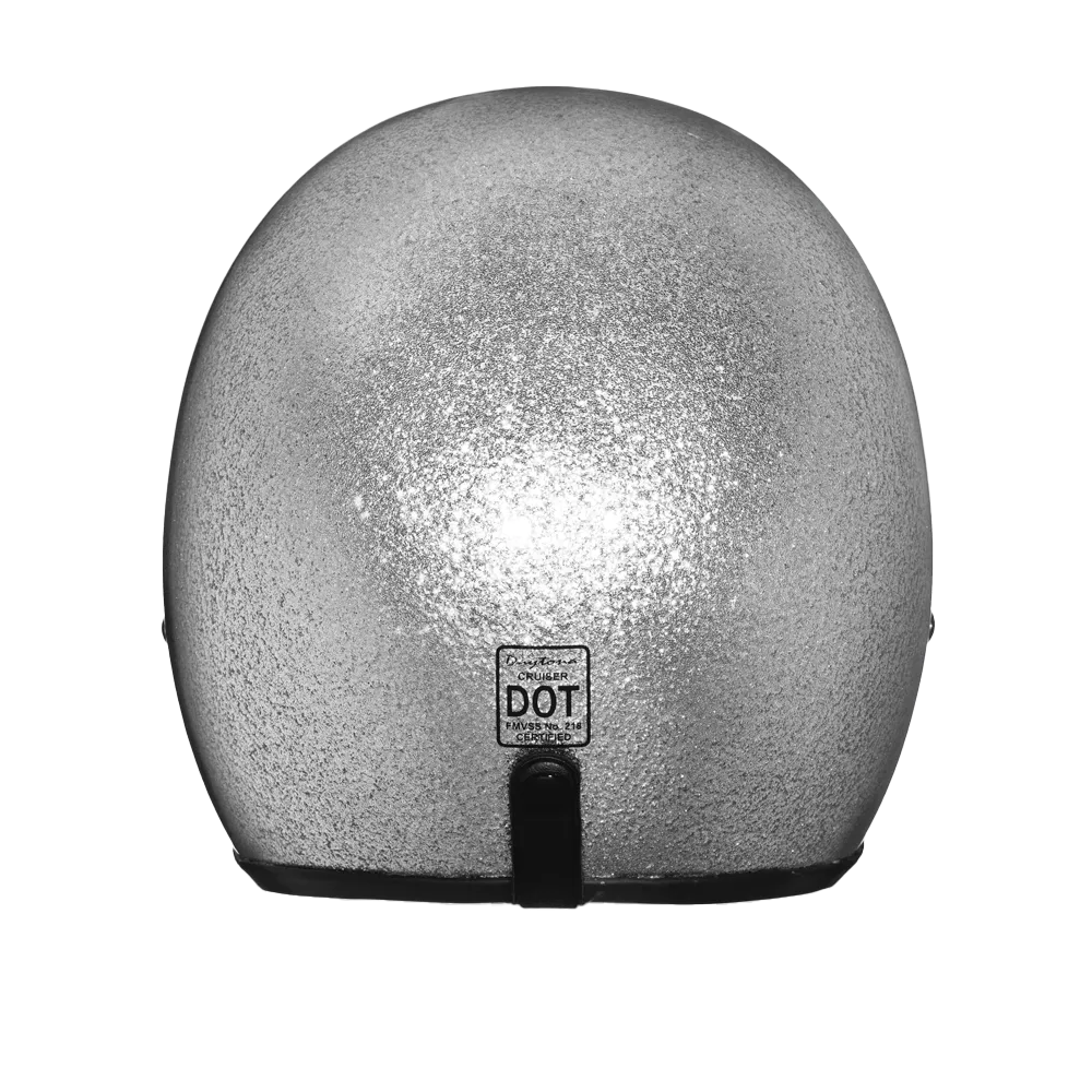 Our D.O.T. Daytona Cruiser 3/4 Shell Helmet In The Silver Metal Flake, Meets And Exceeds D.O.T. FMVSS 218 Standards And Is The Smallest D.O.T. 3/4 Shell Helmet Ever Made!!  With 3 Different Shell Sizes, You're Sure To Get That Proportionate Fit!!  Available Only With Removable, Snap On Gloss Black Bubble Visor.  Many More Colors And Designs Available Such As Soft Touch Dull Black, Hi-Gloss Black And Hi-Gloss White; Custom Colors: Gun Metal Grey Metallic; Specialty Items: Graphics.  Head Wrap And Cloth Draw String Bag Included.  Sizes Range From XS-2XL.