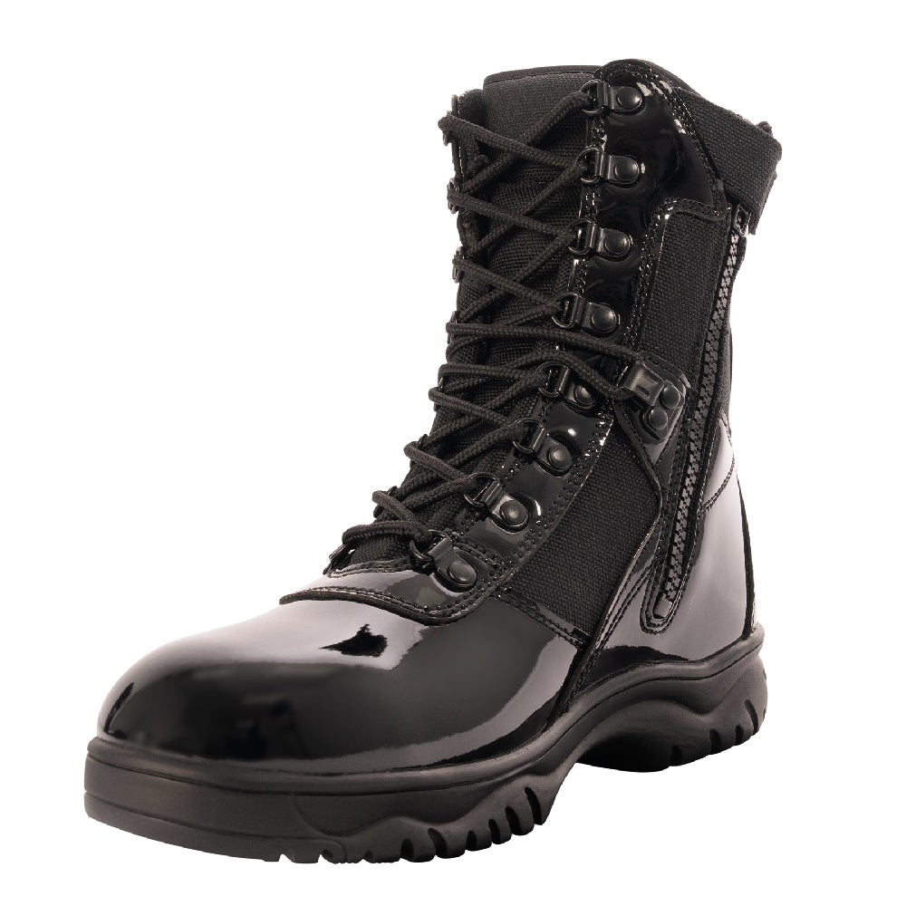 - Professional Appearance & Performance: Our Forced Entry High-Gloss Tactical Boot with Side Zipper features an inspection-ready mirror finish that looks great while out on patrol. From police officers and public safety personnel to security guards, these tactical duty boots ensure your uniform remains looking sharp.
