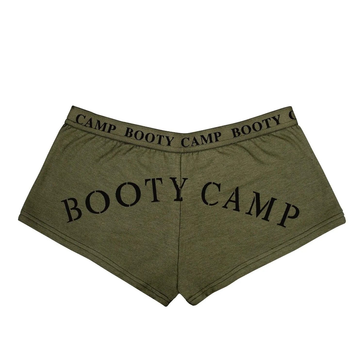 - “Booty Camp” Text Along The Elastic Waistband Of The Shorts