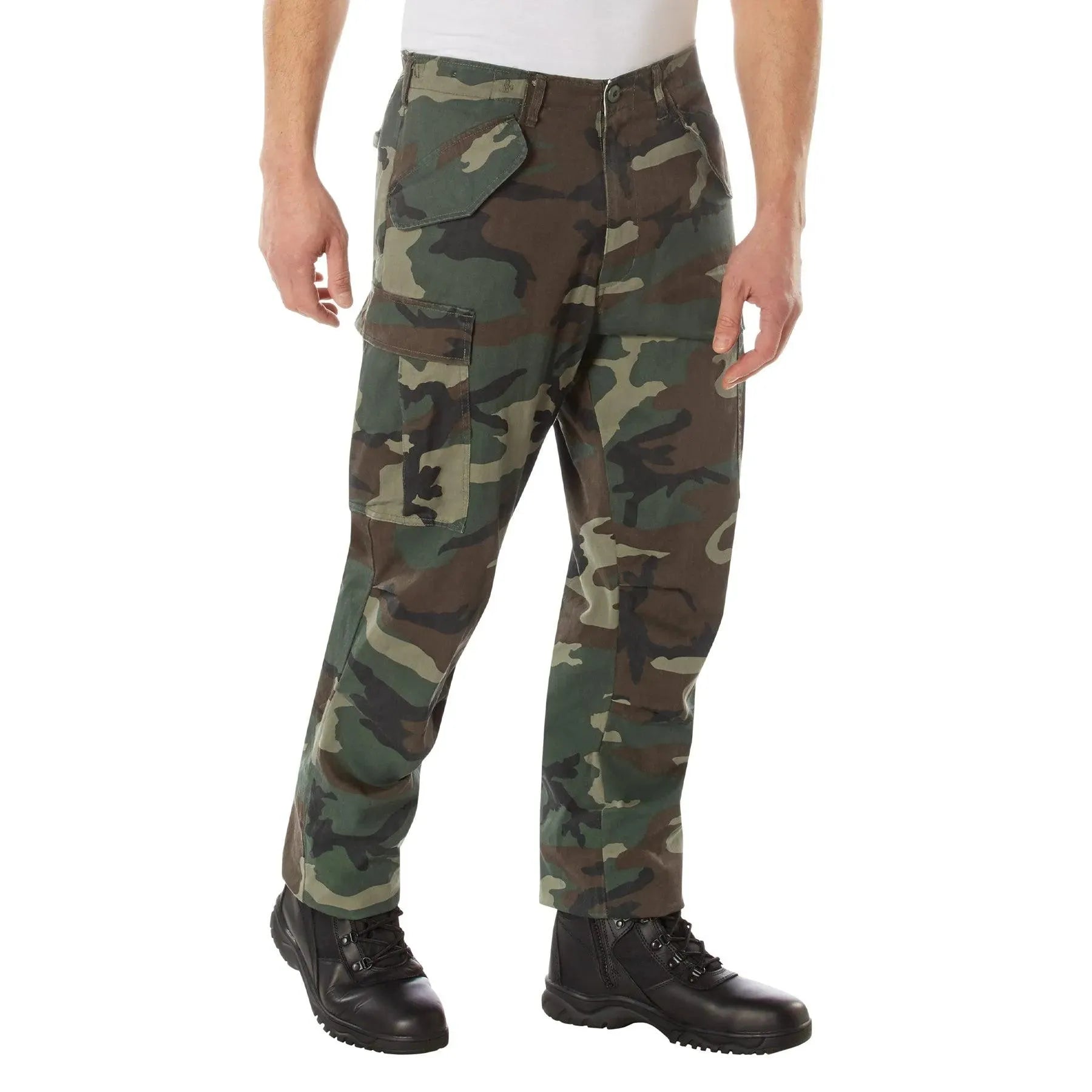 These Rothco M65 pants feature a Vietnam-era Military style and are made with comfortable, durable washed 9 oz. cotton twill with 6 utility pockets (2 button down back pockets, 2 front flap pockets and 2 cargo pockets) with a snap closure. Additional features of the M-65 trousers include pleated knee area, adjustable waist tabs for a secure fit, zipper fly and drawstring bottoms.