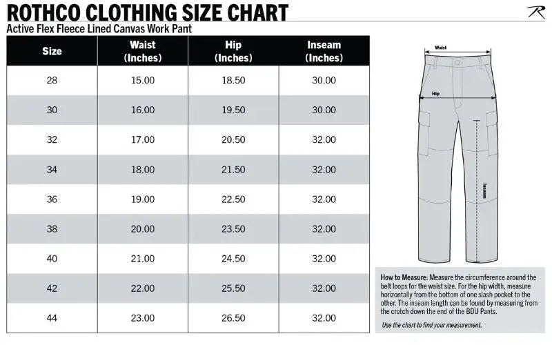 Built to keep you comfortable while on your bike or off your bike throughout the day, the Active Flex stretch technology is ready to tackle any challenge head-on, offering flexibility and ease of movement. From outdoor expeditions to field work, Rothco’s high-performance stretch material moves with you. Fleece-Lined Active Flex Pants are built for riders who don’t slow down when the weather does. The stretch canvas moves with you — whether you’re ripping cold miles on or wrenching in the garage. Inside, the soft fleece liner locks in warmth without bulk, keeping you comfortable from dawn to dark.