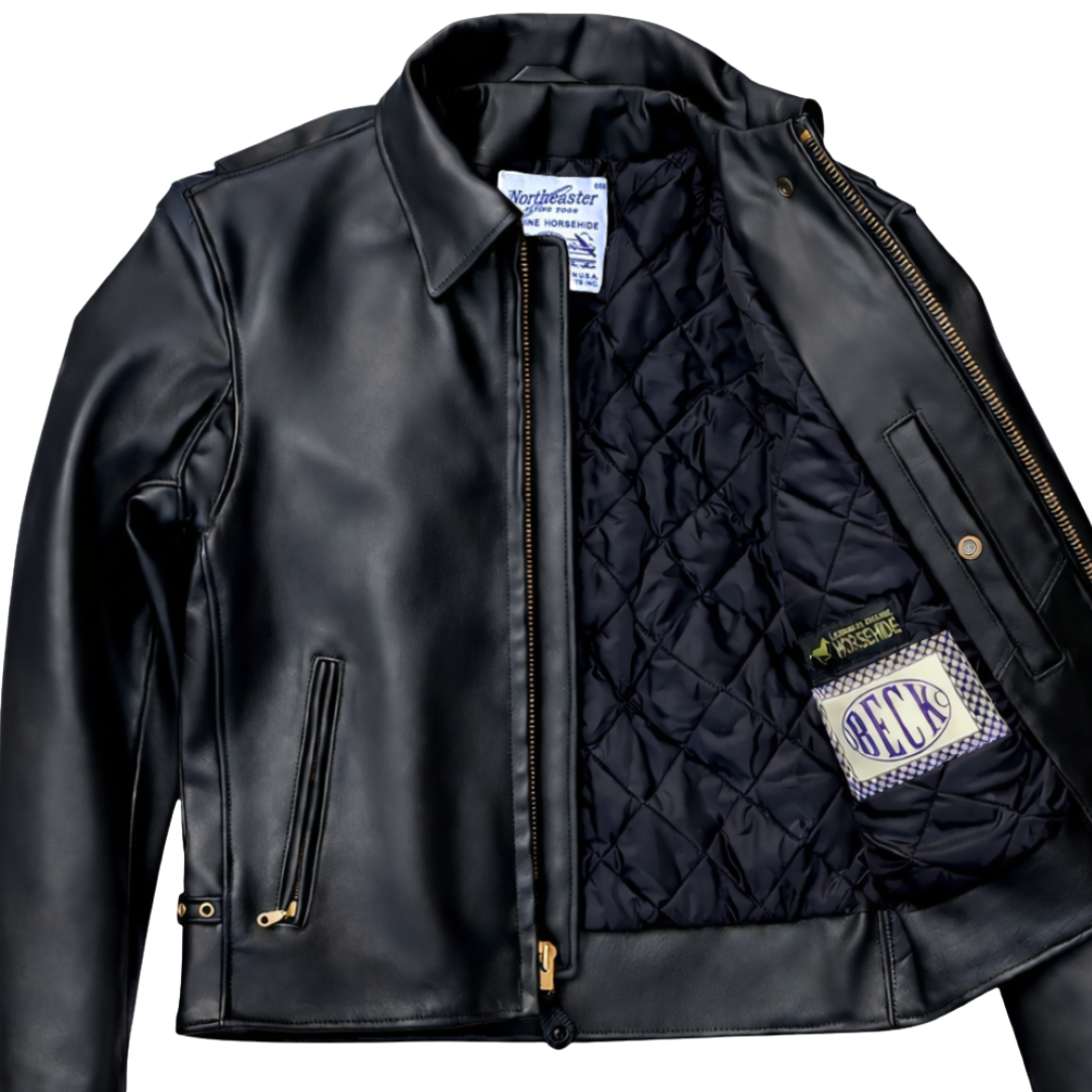 Elevate your ride with the BECK™ 777 Northeaster Flying Togs Genuine Horsehide Motorcycle Jacket – where tradition meets innovation. Embrace unmatched style, durability, and quality. Beck Northeaster & Flying Togs are registered US Trademarks of Legendary USA.