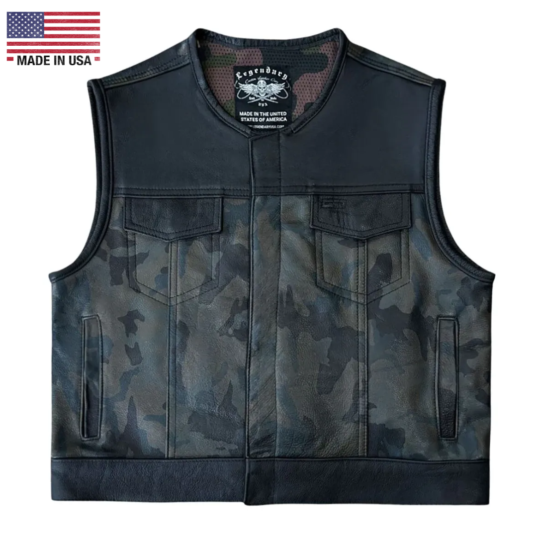 Legendary LowLife Camo Leather Cropped Fitted Club Style Motorcycle Vest