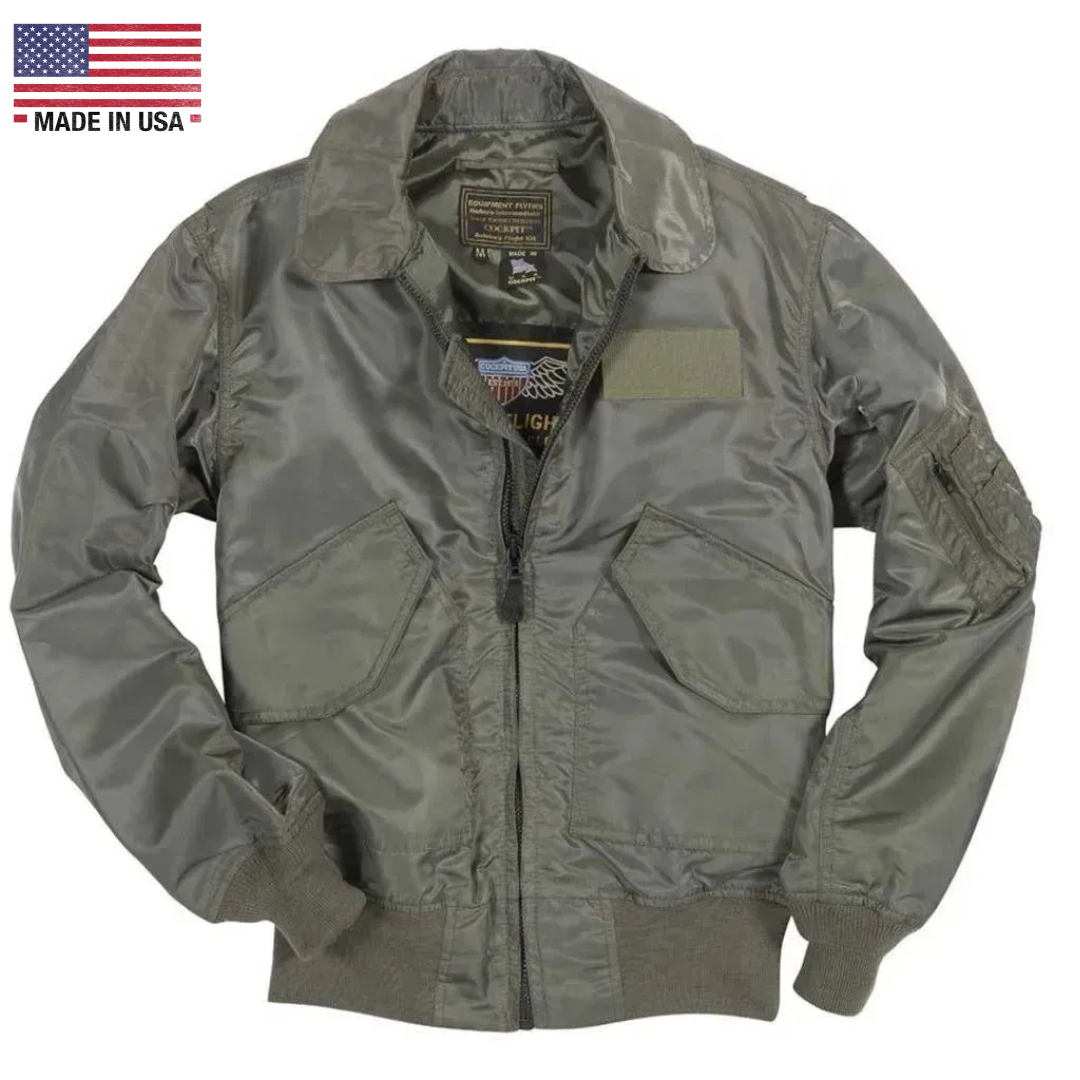 Cockpit USA Mens USN Fighter Weapons Nylon Flight Jacket - Sage