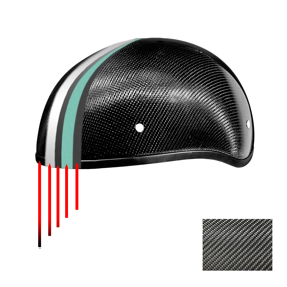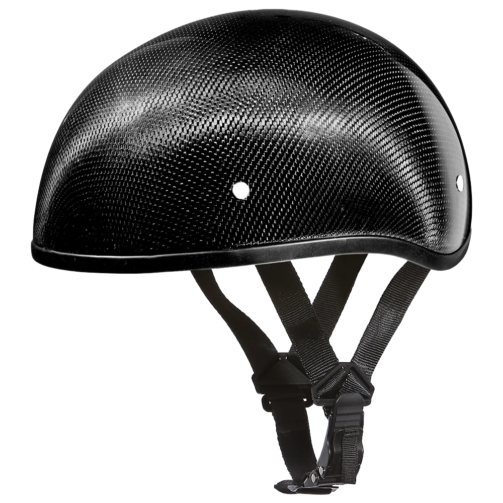 Our D.O.T. Daytona Slim Line Skull Cap 1/2 Shell Helmet In Carbon Fiber, Meets And Exceeds D.O.T. FMVSS 218 Standards And Is The Smallest D.O.T. 1/2 Shell Helmet Ever Made!!  With 3 Different Shell Sizes, You're Sure To Get That Proportionate Fit!!  Note The Quality In The Weaving Of The Carbon Fiber!  Our Carbon Fiber Is The Real Thing!!   With The Latest Technology, We Have Brought Our Carbon Fiber Standards Above And Beyond Our Own Expectations.  Available With Or Without Removable, Snap On Gloss Black Mini Scoop Visor.  Many More Colors And Designs Available Such As Soft Touch Dull Black, Hi-Gloss Black, Hi-Gloss White And Hi-Gloss Pink; Custom Colors: Black Cherry, Gun Metal Grey Metallic, Pearl White And Silver Metallic; Specialty Items: Leather And Graphics.  Head Wrap And Cloth Draw String Bag Included.  Sizes Range From 2XS-4XL.