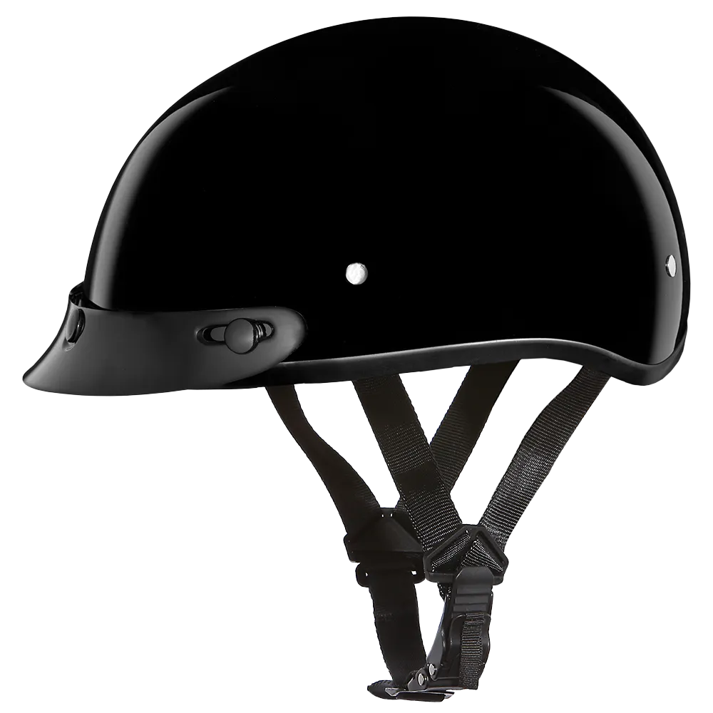 Daytona Skull Cap Half Shell Motorcycle Helmet - Beanie Style - Hi-Gloss Black | DOT Approved
