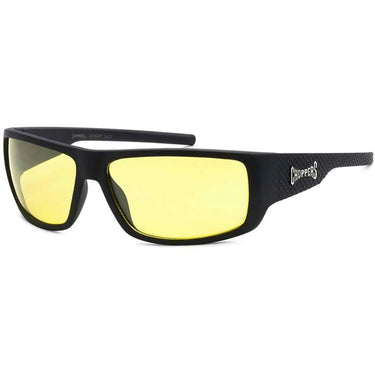 These unisex motorcycle safety sunglasses feature curved lenses which creates a tear-free vision at highway speeds, comfortable frames and stylish flash mirror or colored lenses. Our Choppers motorcycle sunglasses work great as safety glasses and minimize the chance of wind, particulates and droplets from the eye area. Curved lenses reduce the chance of fogging when wearing face masks. These UV400 sunglasses are available in a choice of 6 lens colors. Frame width: 142mm | Bridge width: 17mm | Arm length: 137mm.