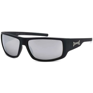These unisex motorcycle safety sunglasses feature curved lenses which creates a tear-free vision at highway speeds, comfortable frames and stylish flash mirror or colored lenses. Our Choppers motorcycle sunglasses work great as safety glasses and minimize the chance of wind, particulates and droplets from the eye area. Curved lenses reduce the chance of fogging when wearing face masks. These UV400 sunglasses are available in a choice of 6 lens colors. Frame width: 142mm | Bridge width: 17mm | Arm length: 137mm.
