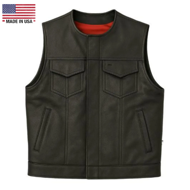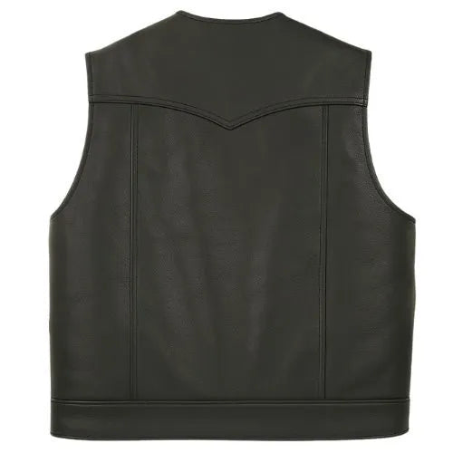 The Legendary Brotherhood Men's Leather Motorcycle Vest is one of our best-selling vests. It features a sleek design without a stand-up collar, similar to our Reaper Vest. This vest includes our exclusive Pistola™ tethered leather gun pockets, which hold a full-size Colt .45 ACP and come with an integrated magazine/cell phone pouch. The 2nd generation model adds twin hand warmer pockets for extra comfort. The Brotherhood Men's Leather Motorcycle Vest comes in actual chest sizes to ensure the best fit possible. Experience the best with this Men's Leather Motorcycle Vest.