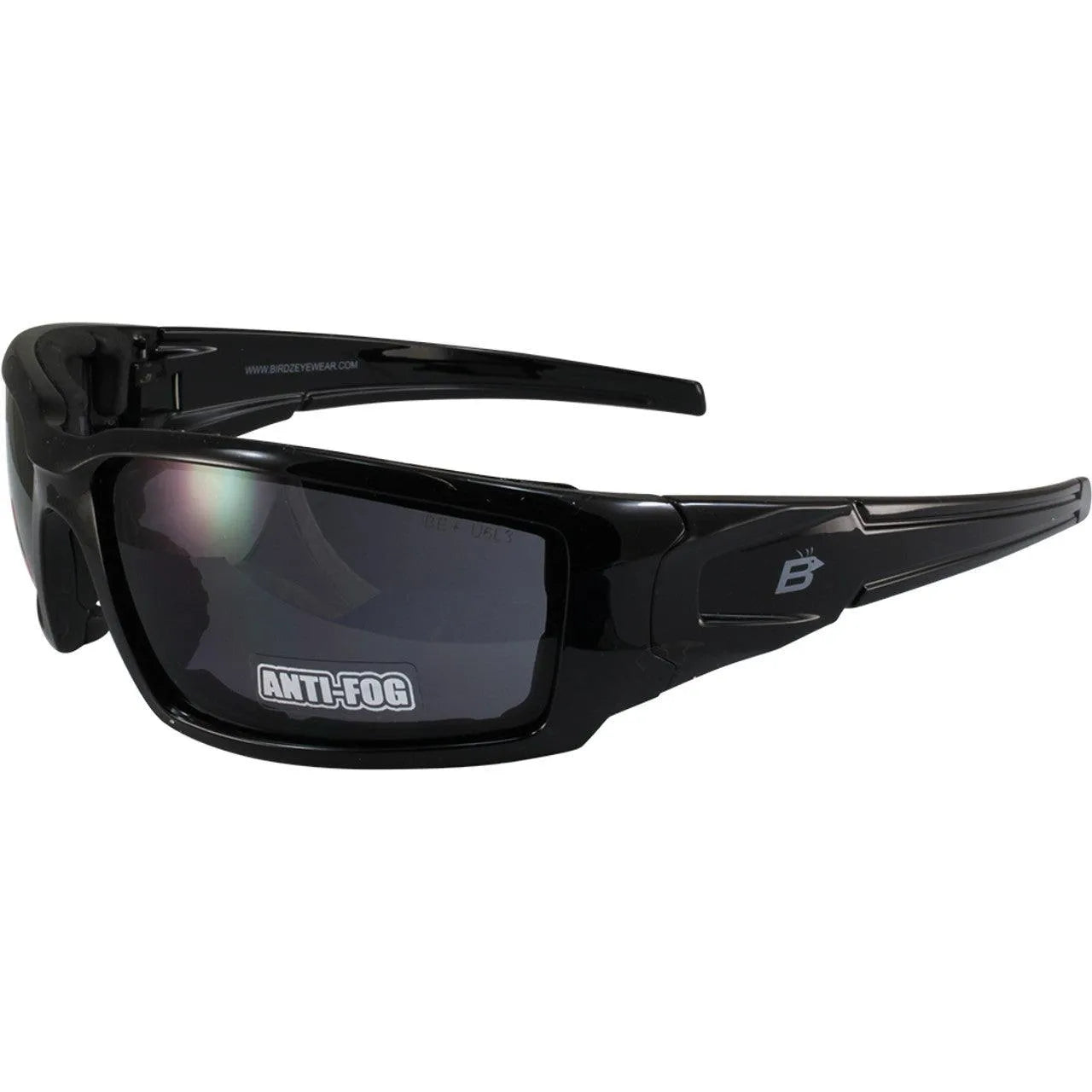 The Osprey is an aggressive sport wrap with super thin temples.  The thin temple design is perfectly suited for riders who dislike the feel of bulky sunglasses pressing on their heads when wearing a helmet.  The high quality frames of the Osprey are specially designed with click to lock in place temples.   The Osprey is constructed of a high quality polycarbonate frame.  The padding is a vented EVA foam that allows adequate ventilation while keeping the eyes protected from the rushing wind.   The UV400 lenses offer protection from the harmful UV rays of the sun.  The lenses are antifog ensuring crisp and clear vision outside in the elements.  Additionally, the Osprey meets ANSI standards for safety glasses.   The shatterproof polycarbonate lenses keep your eyes safe, giving you maximum protection from dirt and debris.   For your convenience, the Osprey comes with a microfiber pouch for safe cleaning and storage.    It is available in clear, smoke and yellow lenses.