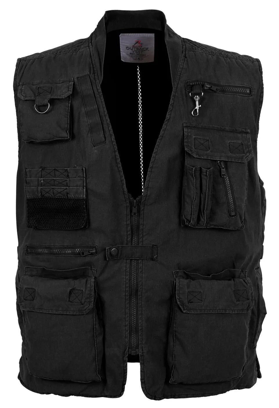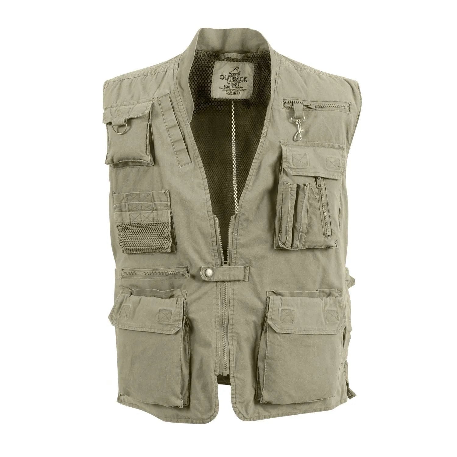 Rothco Deluxe Safari Outback Vest features 18 pockets with endless possibilities. Ideal for the avid outdoorsman this versatile vest also features a mesh lining, vented back, zip front with snap closure.