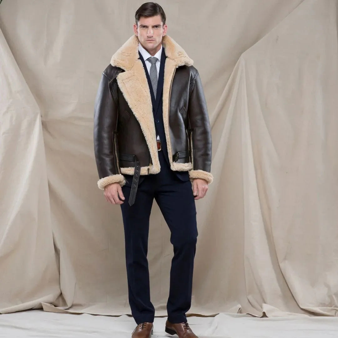 This is a historically accurate, rugged, and refined sheepskin jacket built for collectors, riders, and anyone who appreciates timeless aviation style.