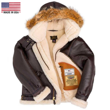 Introduced in 1934 and relied upon by WWII bomber crews, the B-3 Sheepskin Bomber Jacket remains one of the warmest and most iconic flight jackets ever produced. Proudly manufactured in the USA, this Cockpit USA Hooded B-3 enhances the original design with a luxurious raccoon-fur–trimmed hood for added protection in harsh winter conditions—without sacrificing the authenticity of the classic B-3.