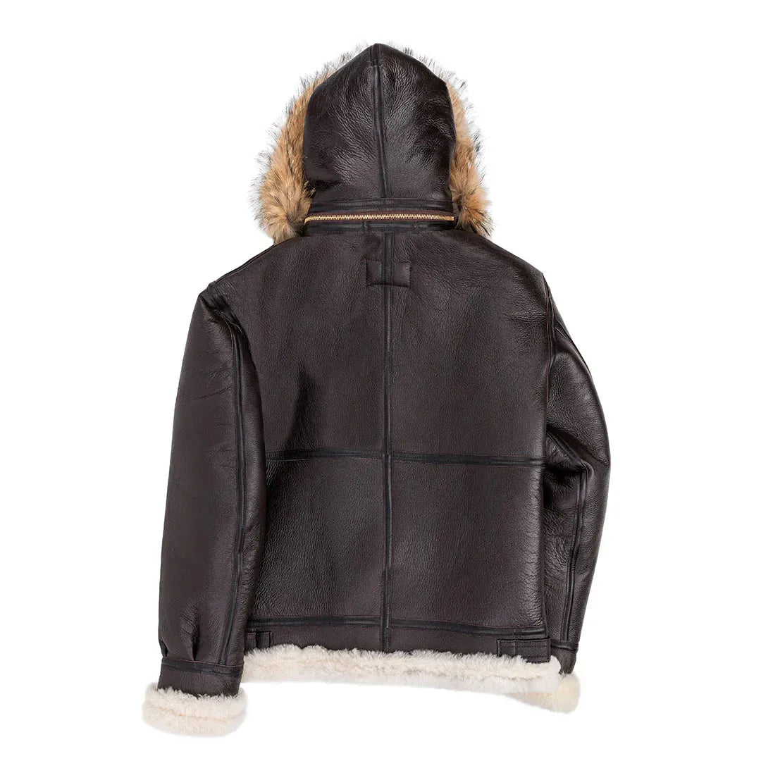Originally engineered for open-cockpit and high-altitude missions, the B-3 was essential gear for crews flying in freezing, unpressurized environments. This updated version preserves every defining element: thick supple sheepskin with a nappa-finished exterior, leather-welted seams, a double buckle throat latch, and heavy-duty hardware. The detachable hood provides modern versatility, offering additional insulation and wind protection when temperatures drop.