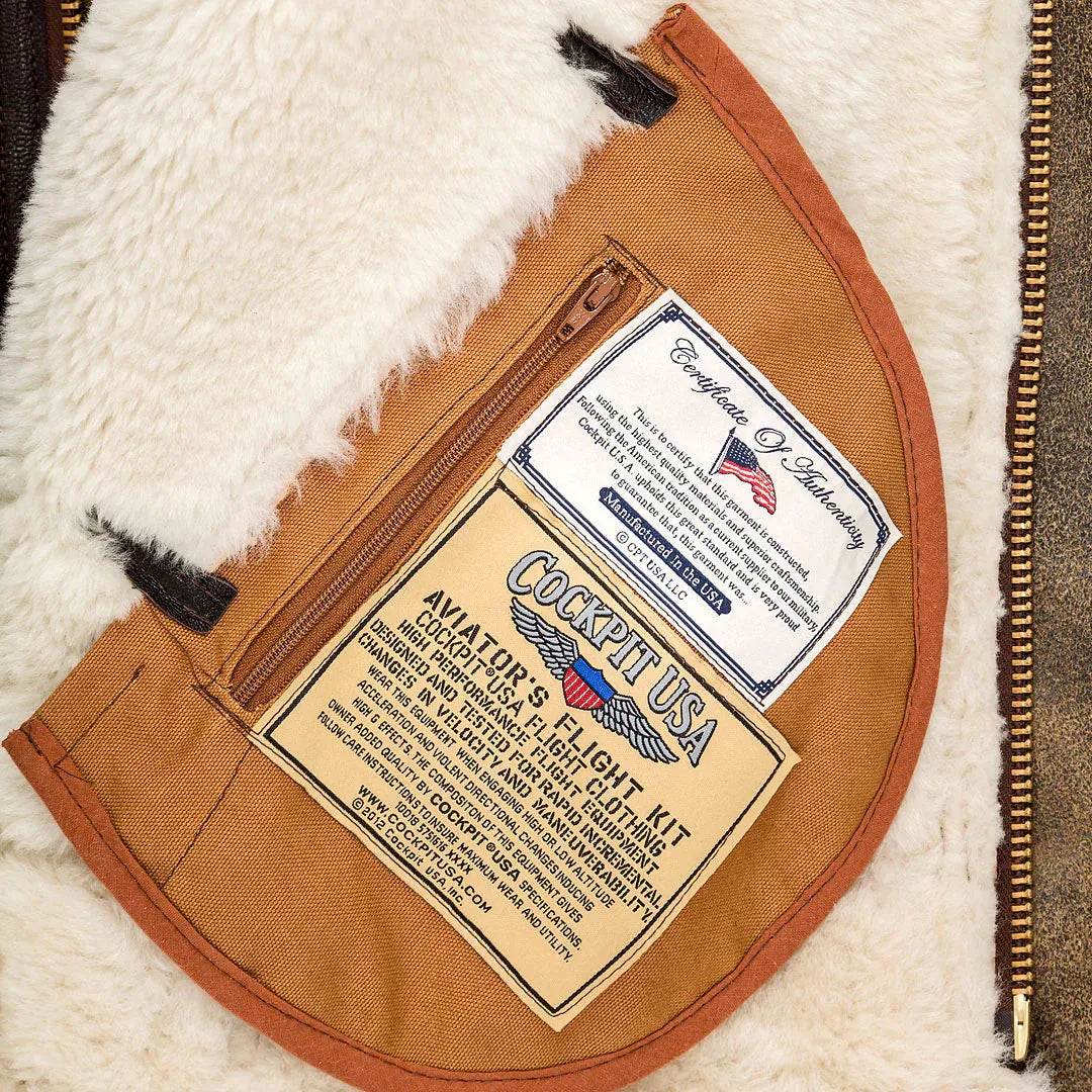 Cockpit USA Men's Hooded B-3 Sheepskin Bomber Jacket