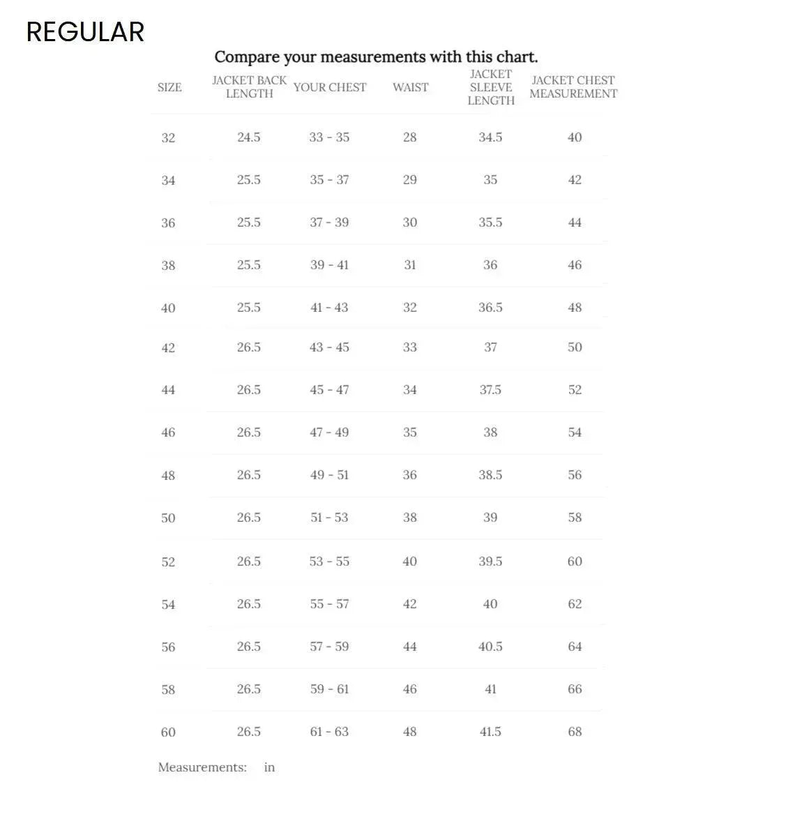 26" length (28" in Long size)