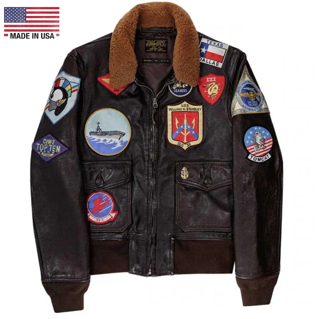Step back into the cockpit with the official Top Gun II Maverick G-1 Flight Jacket, Cockpit USA’s faithful reproduction of the jacket worn in the blockbuster sequel. Designed for die-hard fans and collectors, this American-made G-1 showcases 17 movie-accurate embroidered patches, the iconic USN anchor award pin, and a premium seal-brown goatskin leather shell that’s hand-finished for a vintage, battle-worn look.