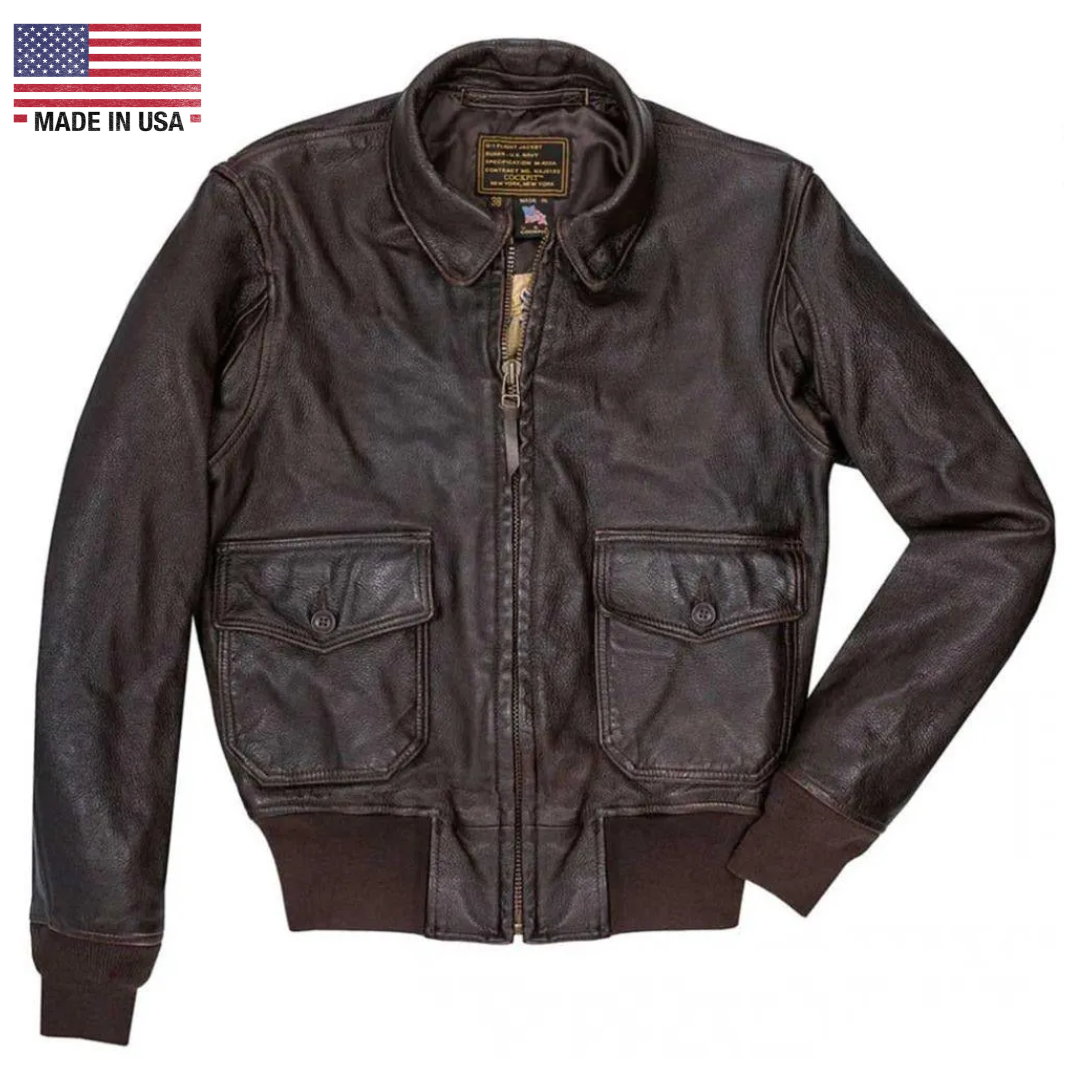 Cockpit USA’s G-1 Vintage Naval Aviator Jacket recreates the rare, battle-worn look of a fighter pilot’s modified G-1 from the USS Forrestal. The original jacket that inspired this design had its mouton fur collar removed and replaced with leather—a common field modification for pilots who flew primarily in warm-weather environments and needed a cooler, more streamlined fit. With its hand-treated goatskin and authentic naval detailing, this furless G-1 delivers a rugged, historically accurate profile true to the aviators who served aboard the Forrestal and later the Constellation with squadrons like VA-65.