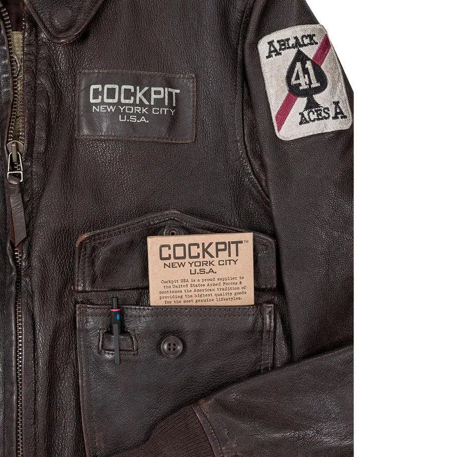 Cockpit USA recreates one of the most historically significant Naval aviator jackets with this USS Forrestal Vietnam Fighter Pilot G-1. Hand-treated vintage goatskin, authentic squadron patches, and a beautifully silk-screened illustration of the USS Forrestal on the back bring this legendary piece of aviation history to life. Modeled after a real Vietnam-era pilot’s jacket—with the fur collar removed for warm-weather service—this G-1 delivers the exact look, feel, and spirit of the men who flew off the Tonkin Gulf during the conflict. Each jacket is distressed by hand, ensuring no two pieces are ever identical.
