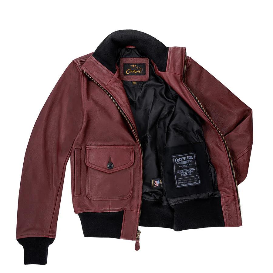 Inspired by the legendary aviator herself, the Cockpit USA Women’s Amelia Jacket in Burgundy showcases the sleek, feminine silhouette worn by Amelia Earhart—reimagined in rich whole-grain lambskin. This handcrafted burgundy edition highlights the same classic design lines as the original while adding contemporary contrast details through its black knit collar, cuffs, and waistband. Elegant, empowering, and effortlessly wearable, this Amelia Jacket delivers timeless aviation heritage with a modern edge.