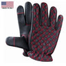 The number one selling American Deerskin Short Wrist Touchscreen Gloves are now available with a red double-diamond stitched pattern. Touchscreen capability on the thumb and index finger for use with touchscreen. Men's Deerskin Short Wrist Touchscreen Gloves are made in the USA and crafted with select leathers and sewn with the best threads available for extra long life and strength. These touchscreen riding gloves are designed with an elasticized cuff at the wrist bone and work great as motorcycle gloves, driving gloves, or just everyday gloves. Additionally, they offer excellent dexterity and a comfortable fit, making them perfect for riders who require enhanced performance. Experience superior quality and performance with every wear and stay connected effortlessly. Proudly Made in USA.