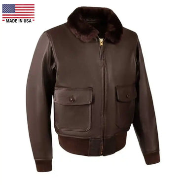 Our US Navy Blue Angels jacket also comes equipped with a convenient hidden pencil pocket and underarm gussets with vent holes. For a comfortable fit, this brown Navy leather flight jacket features an elastic waistband and a bi-swing back for extra freedom of movement. Never worry about pilling with our Legendary vintage-style leather bomber jacket which comes with pill-free acrylic sleeve cuffs. Our Hellcat Men's G-1 Leather Flight Jacket is proudly Union-Made in the USA.