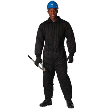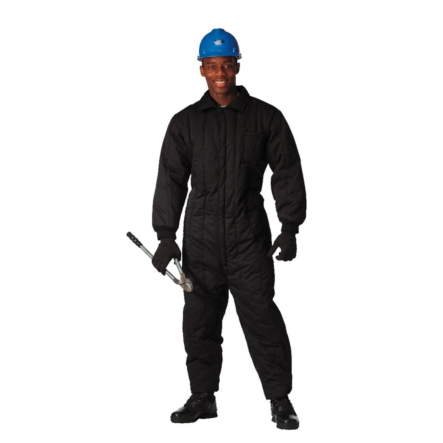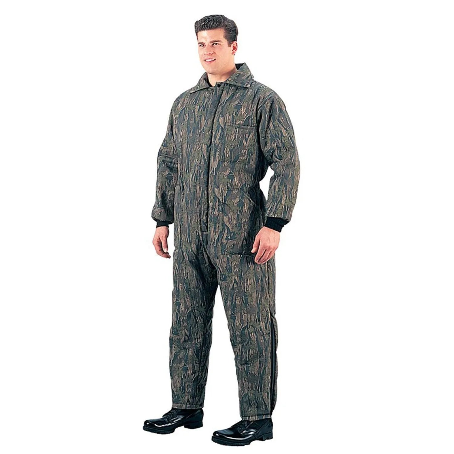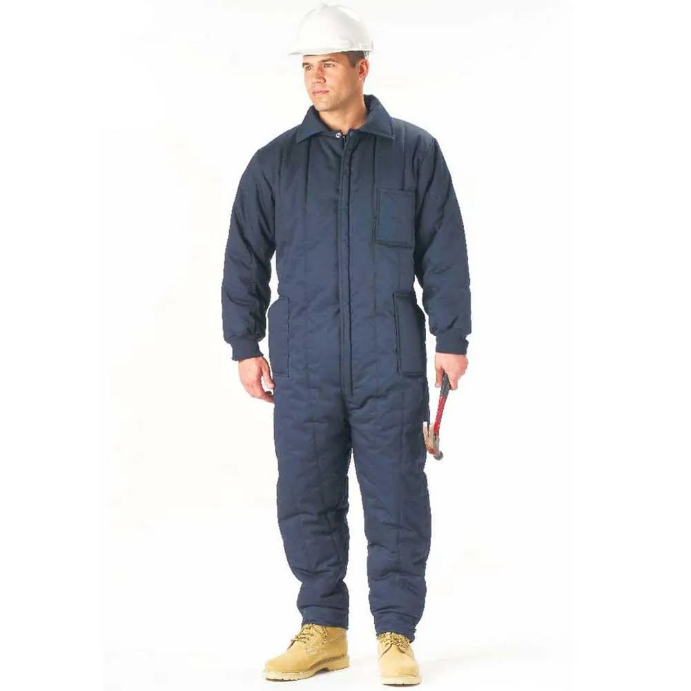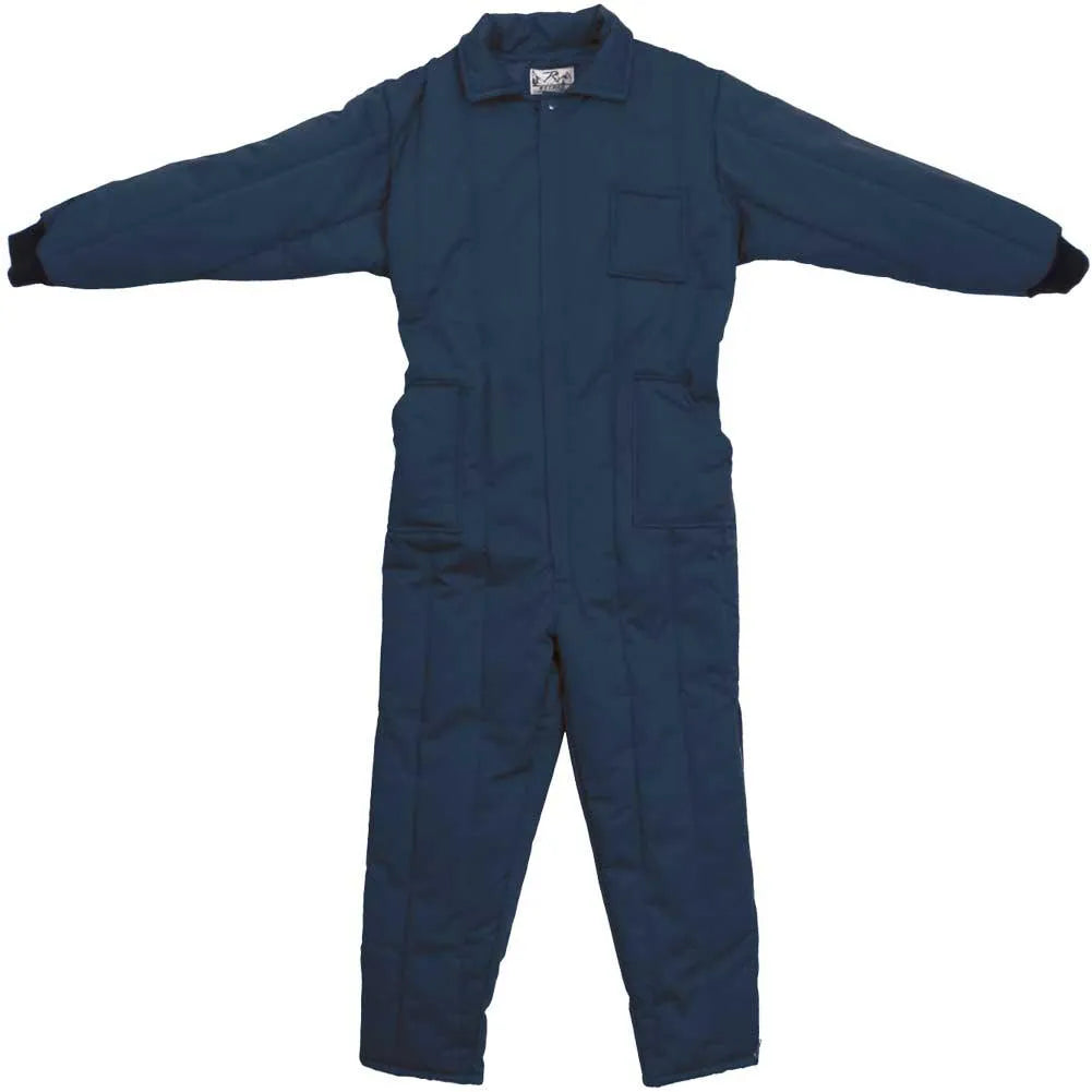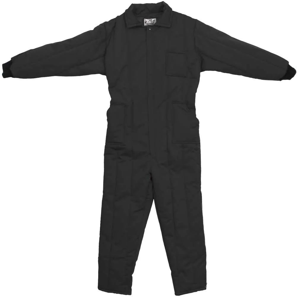 Constructed with a tough poly/cotton twill shell, nylon lining, and 6oz. Poly fiberfill, Rothco's Insulated Coveralls are built strong and will keep you incredibly warm. Features of the coveralls include two-way front zipper from crotch to neck, storm flap with single snap closure at top of the neck, two large slash pockets (nylon lined / open with no closure), elastic along the back side of waist only, zippered legs, and elastic knit wrist cuffs. The insulated coveralls are perfect for working outdoors, hiking, hunting and more. Imported.
