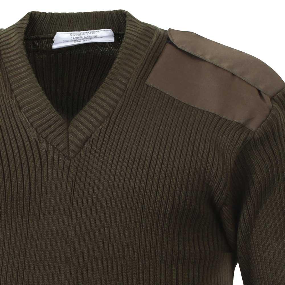 The Rothco V-neck commando sweater exemplifies dependability at a great price. This men's military style sweater features 100% acrylic ribbed knit construction, shoulder epaulets, double needle stitched elbow and shoulder patches for reinforcement and meet Military Specifications. This men's V-neck ribbed sweater comes in the three colors.