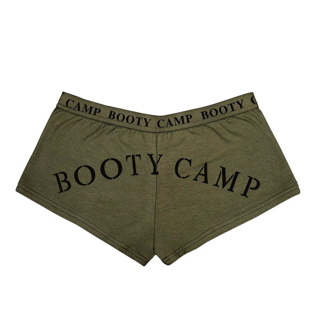 - “Booty Camp” Text Along The Elastic Waistband Of The Shorts
