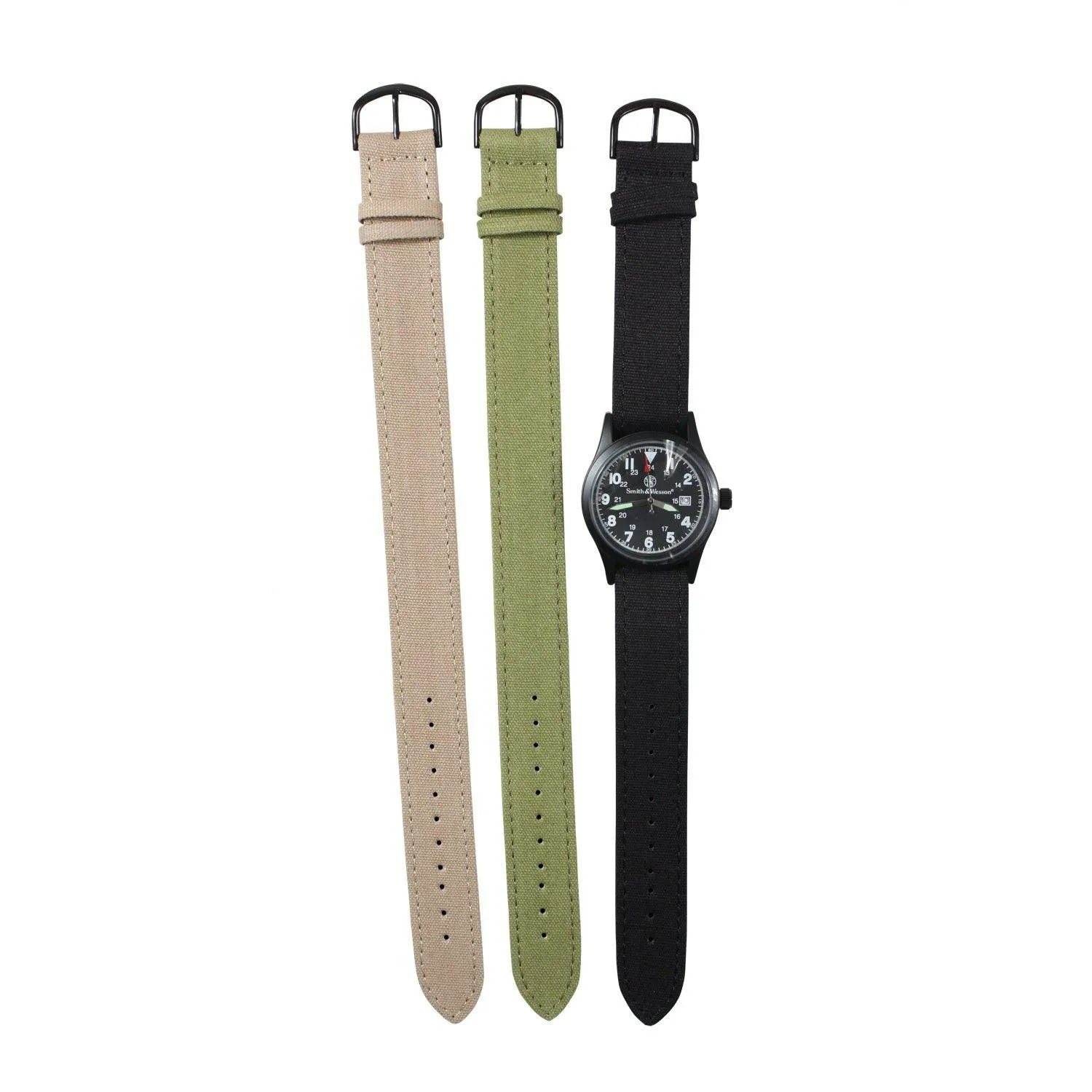 - Watch Set Includes 3 Interchangeable Heavy Duty Canvas Watch Bands In Olive Drab, Black And Khaki, Helping To Maintain A Professional Look Matching Your Uniform