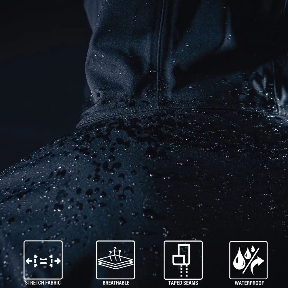Silence the storm with our Shadow Ops Waterproof Rain Jacket. Unlike the typical bulky rain coat that makes a lot of noise as you move, these high-performance, ultra-light rain jackets remain quiet, provide unparalleled wind and rain protection, and offer extreme comfort. The outdoor jacket has a waterproof rating of 5,000mm that easily endures harsh outdoor weather conditions.